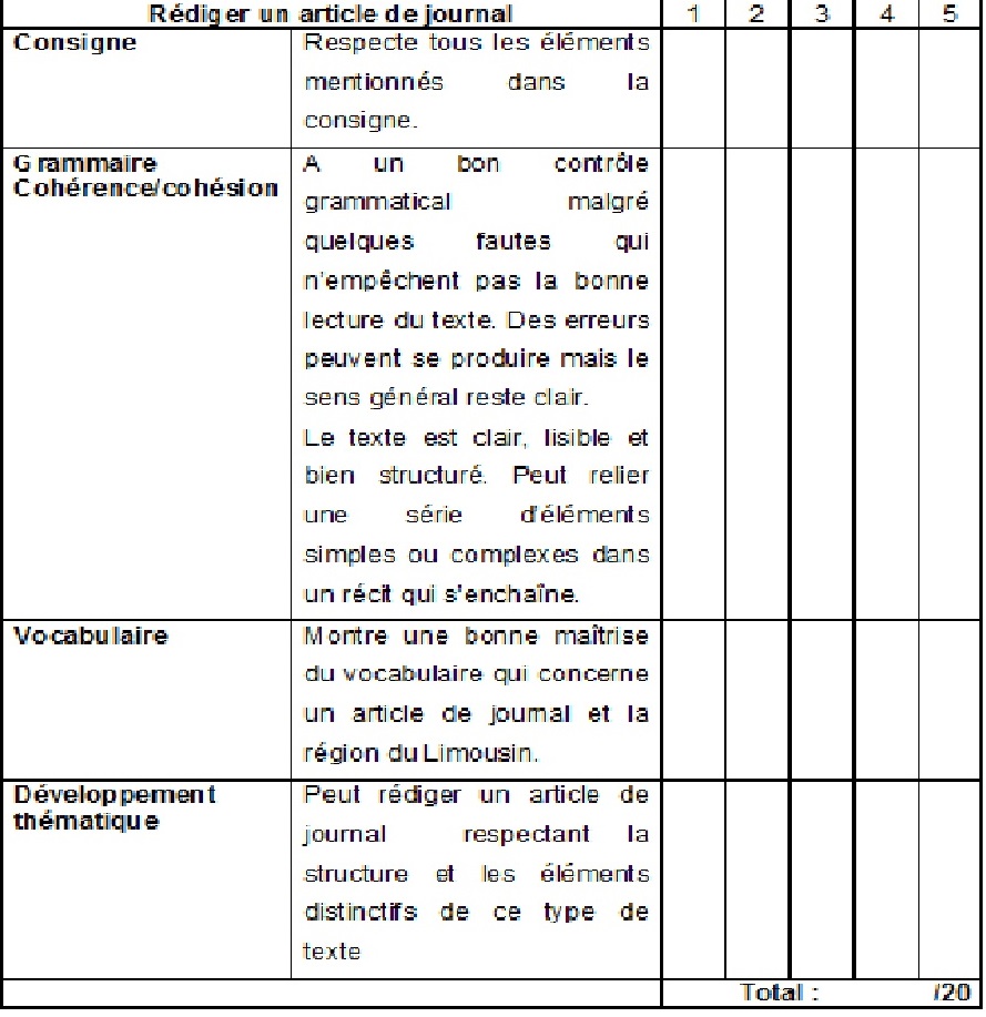 Voici la grille que votre enseignant va utiliser pour évaluer votre travail. Bon courage!